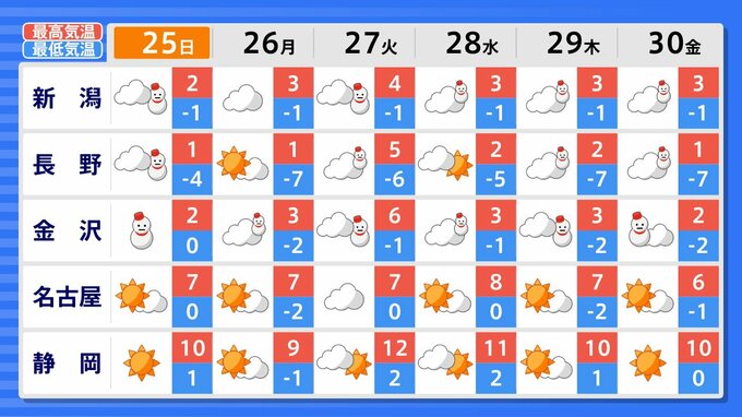 25日の日曜日も北陸では雪が降るでしょう。
