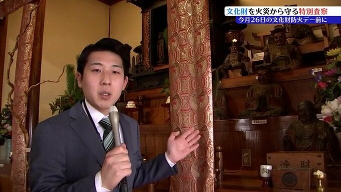 26日の「文化財防火デー」を前に、盛岡市の寺で消防による特別査察が行われ、消火器の状態などが確認されました。