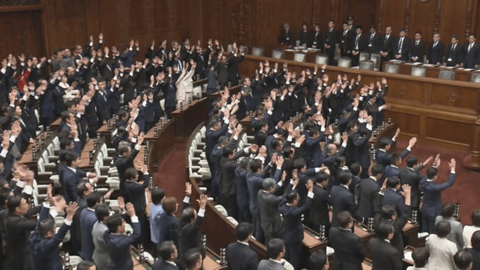 衆議院の解散は、憲法第7条に基づき「天皇の国事行為」として行われます。議長が読み上げるのは天皇陛下からの「詔書(しょうしょ)」です。かつて、この詔書に対して「天皇陛下万歳」という意味で叫ばれた名残であるという説が最も一般的です。