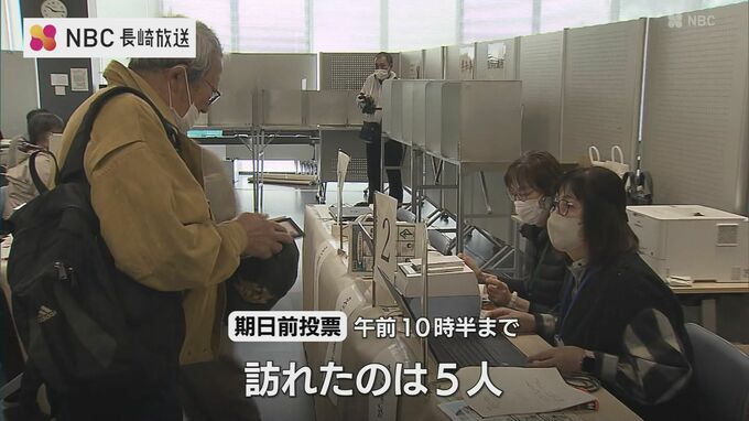 このうち長崎市役所の投票所は午前8時半に開設されましたが、午前10時半までに投票に訪れたのは5人でした。