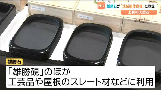宮城県石巻市の雄勝町から産出される上質の天然石「雄勝石」が、特許庁の「地域団体商標」に登録され、22日地元の住民らに報告されました。