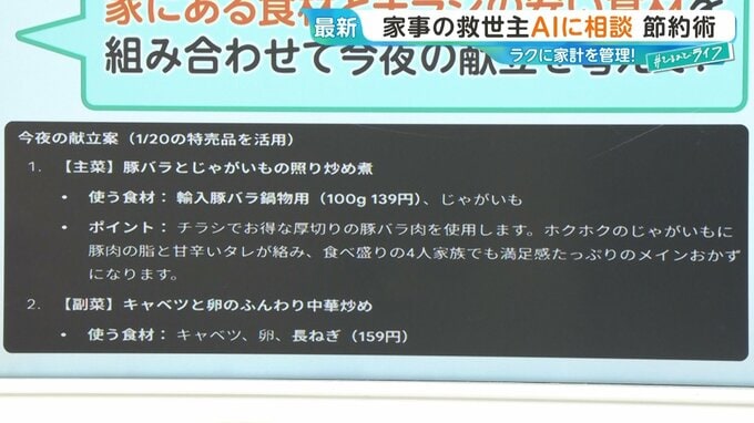 毎日の献立を考えるのも、家事の中では大きな負担に。AIで、頭の負担も“節約”しちゃいましょう。
