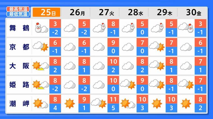近畿地方 1月29日頃から かなりの低温