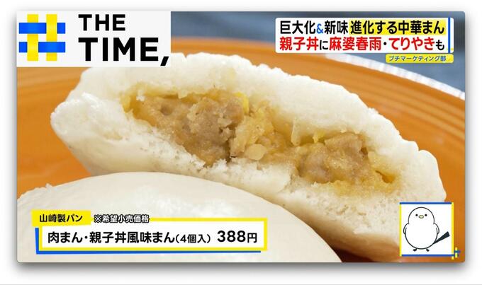 スーパーなどで販売されているのが、卵の優しい味わいが特徴的な「肉まん・親子丼風味まん」や「肉まん・永谷園監修麻婆春雨まん」(山崎製パン/各4個入・希望小売価格388円)