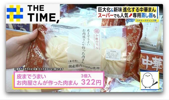 コスパ◎味も◎と人気なのは、『食生活♥♥ロピア』の「皮までうまい お肉屋さんが作った肉まん」(3個入・322円)。