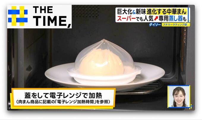 『ダイソー』からは、中華まんが1つ入るサイズの「電子レンジ調理器(肉まん用)」(110円)が登場。容器に水を少し入れ、すのこ、肉まんを置いたら、蓋をして電子レンジで加熱するだけ。(※店舗により在庫状況が異なります)