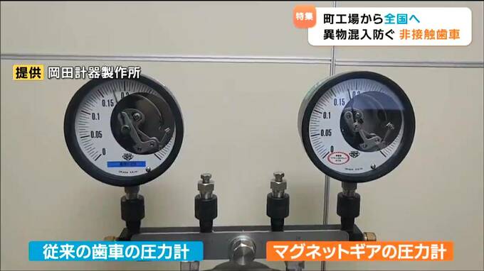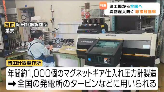 東京の工業用計測器メーカー岡田計器製作所では、年間約1000個のマグネットギアを仕入れ、圧力計を製造しています。圧力計は全国の発電所のタービンなどに用いられます。