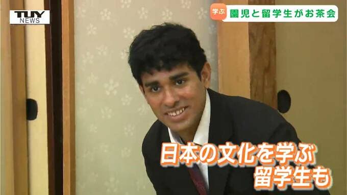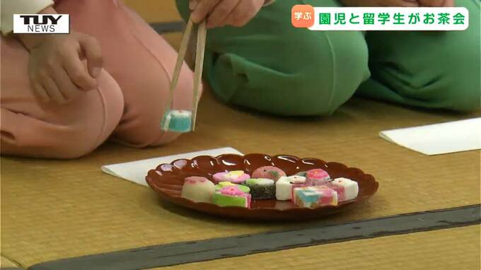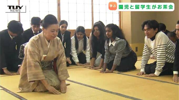 山形市で、きのう毎年恒例のお茶会が開かれ、園児と留学生たちが「もてなし」の心を学びました。
