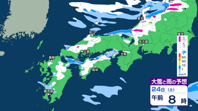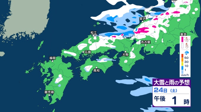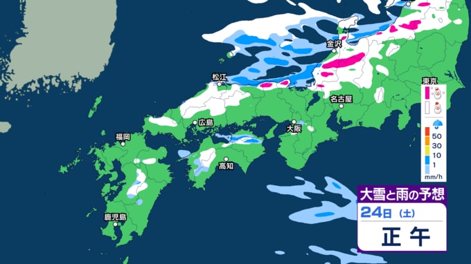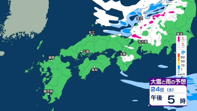 週末の天気 24日(土)は山地中心に大雪注意 厳しい寒さ続く