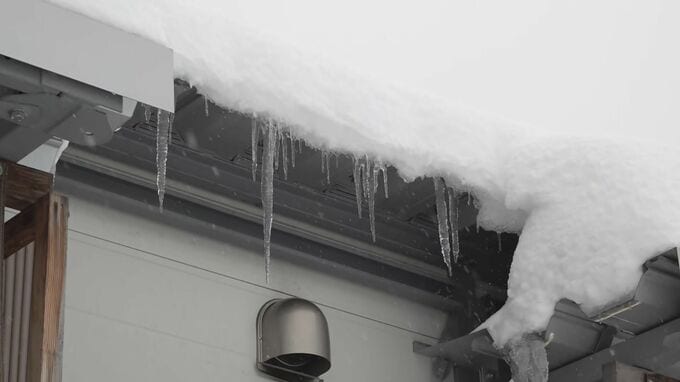 仮設住宅には大きなつららができていました。雨どいがないため、エアコンの室外機が相次いで凍結しているといいます。
