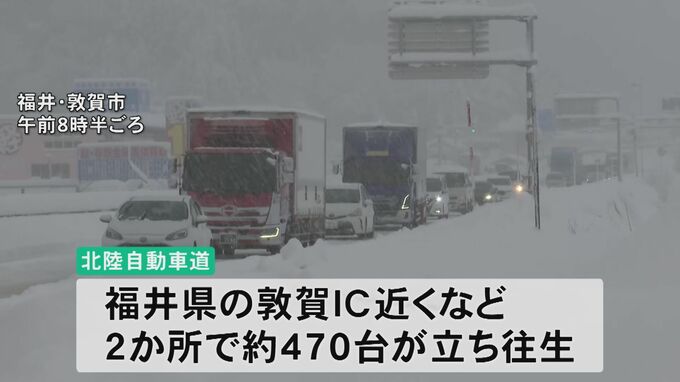 北陸自動車道でも23日午前、福井県の敦賀インター近くなど2か所で立ち往生が発生し、およそ470台の車が巻き込まれました。