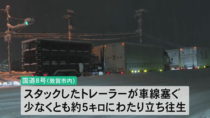 国道8号で22日夜、スタックしたトレーラーが車線をふさぎ、少なくとも5キロにわたって車が立ち往生しました。