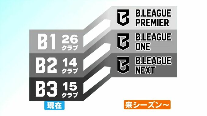 これまで成績による昇格や降格があったB1、B2、B3ではなく、クラブの売上や観客動員数などで振り分けるBプレミア、Bワン、Bネクストの3階層に。