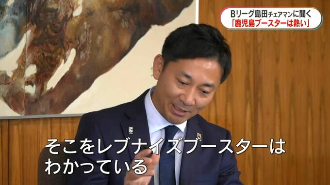 毎年、レブナイズの試合を観戦している島田チェアマン。鹿児島ブースターの熱量に驚きを隠しません。