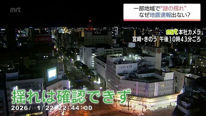 そこで、Xに投稿があった午後10時43分ごろの宮崎市中心市街地の映像を確認してみますが…揺れた様子はありません。