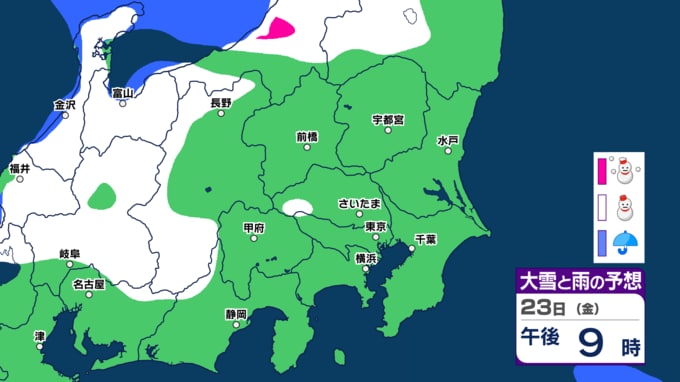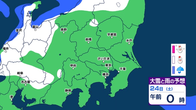 28日(日)には関東地方南部の神奈川、山梨や東海地方の静岡でも一部で雪雲が予想されている時間帯があります。
