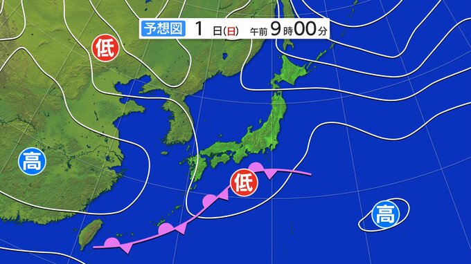 本州の南の海上を「低気圧」が東へ進みます、首都圏に雪をもたらすことが多い有名な「南岸低気圧」です。