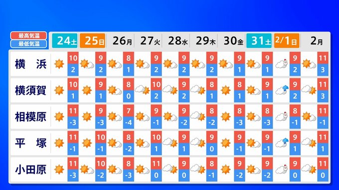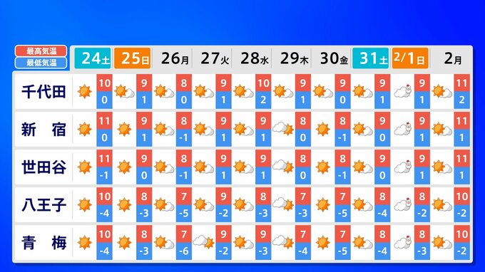 【中学入試2月1日】東京首都圏「雪の予報」寒波の終わりが見えない 「受験日も寒い」2月1日・2日の天気予報 南日本放送 2026年1月23日(金) 20:45 国内 天気 10日間予報(2月2日(月)まで) 2月1日(日)は、関東地方の広い範囲に《雪》の予報が発表されています。都・県ごとに5都市ずつ掲載していますので、画像で確認できます。