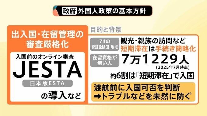 ところが、2025年7月時点で、7万1229人の「在留資格がない人」が確認されており、このうち約6割は「短期滞在」で入国した人だということです。