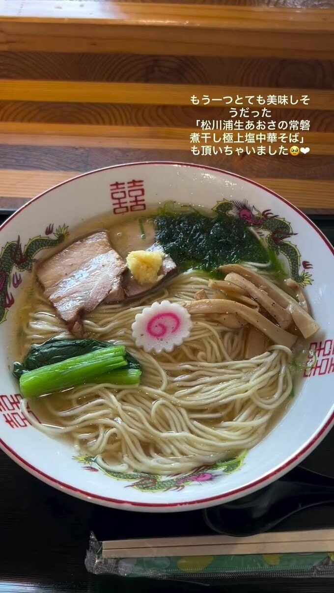 続いて松村さんは、道の駅なみえでご当地グルメの「浪江焼きそば」「松川浦生あおさの常磐煮干し極上塩中華そば」を堪能。さらに地元の造り酒屋さんによる日本酒や酒粕ドレッシングなども案内します。