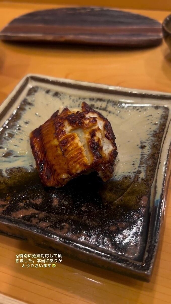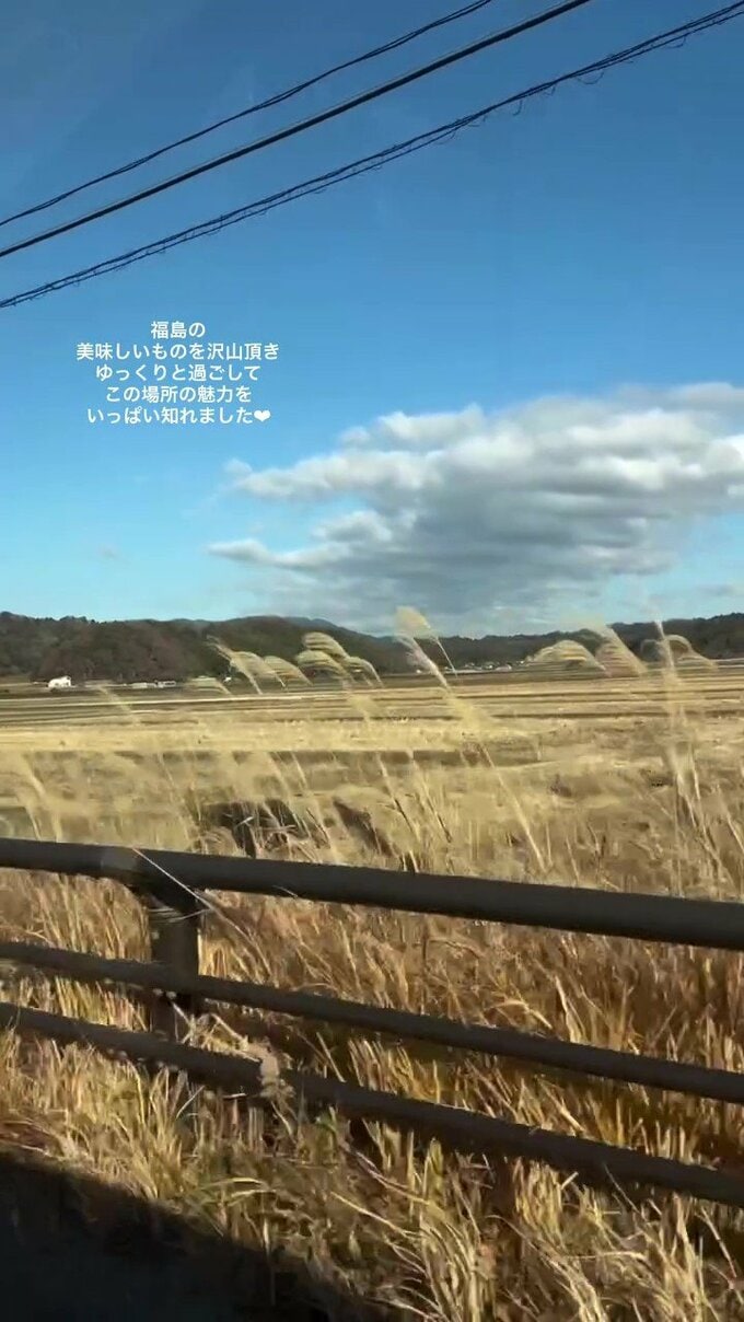 お寿司屋さんでの夕食では「※特別に妊婦対応して頂きました」「本当にありがとうございます」と感謝。帰りの車窓では「福島の美味しいものを沢山頂き」「ゆっくりと過ごして」「この場所の魅力をいっぱい知れました♡」と、余韻たっぷりに伝えています。