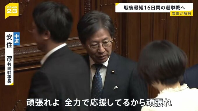 結党したばかりの 「中道改革連合」の安住共同幹事長は、 国会を去る1人1人と握手を交わします。