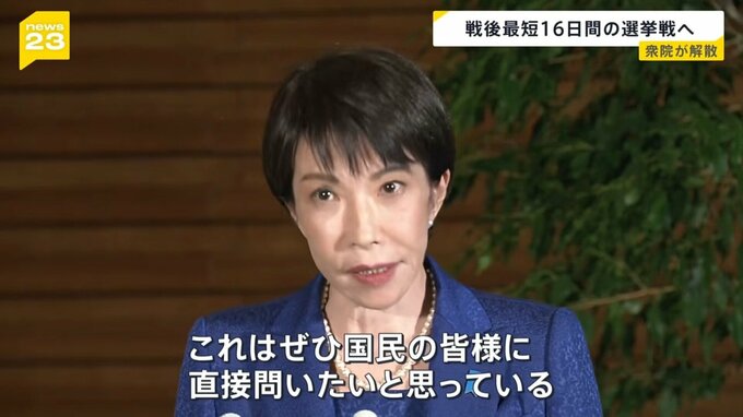 政府は衆議院選挙を「1月27日公示、2月8日投開票」とする日程を決定。解散から投開票までの期間が戦後最も短い16日間の選挙戦が事実上スタートします。