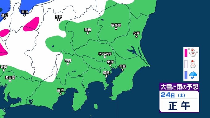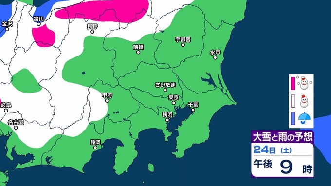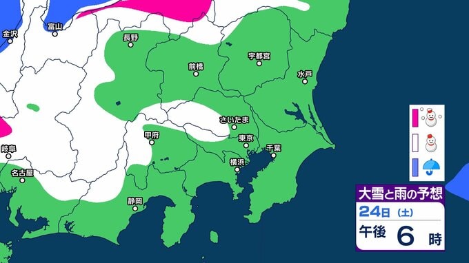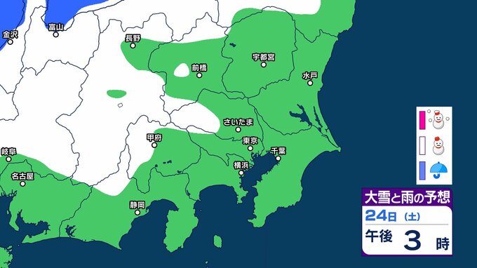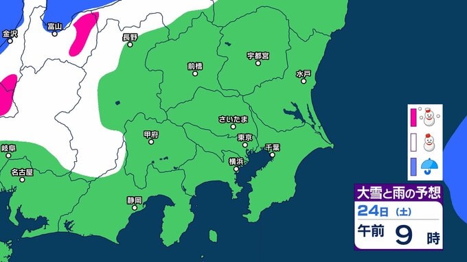 【東京の雪予想】25日6時までの24時間予想降雪量は「関東地方北部の多いところで25センチ」25日にかけて関東甲信地方「上空約5500mに-36度以下の強い寒気」24日(土)~29日(木)東京、横浜、埼玉、千葉、茨城など首都圏の雪は? 雪雨シミュレーション【気象庁/24日午前9時40分】 RSK山陽放送 2026年1月24日(土) 09:44 国内 天気 24日(土) シミュレーションでは、長野県、山梨県、東京都、群馬県の一部地域などに雪雲が見られます。 1 2 3 4 5 ▶雪と雨のシミュレーション