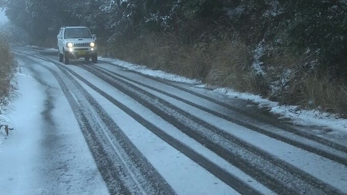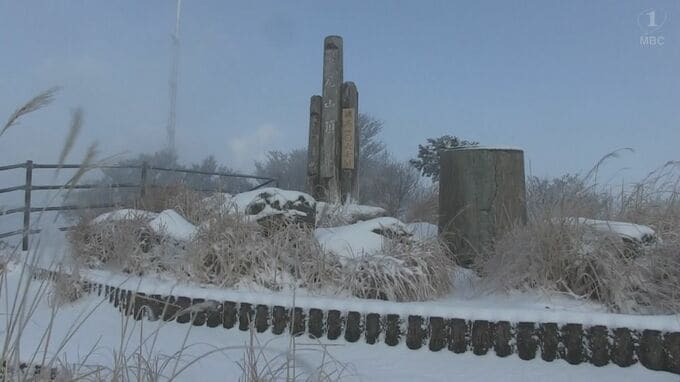 出水市とさつま町にまたがる標高1060メートルの紫尾山山頂では、10センチほどの積雪となりました。