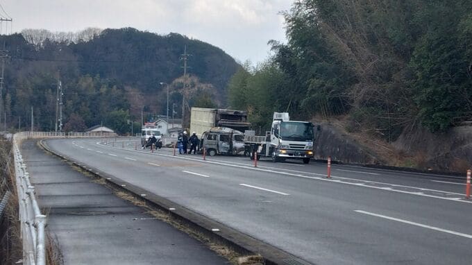 火は約3時間後に鎮火しましたが、ワゴン車から1人が遺体で見つかりました。大型トラックを運転していた徳島県の男性(41)は軽傷の模様です。