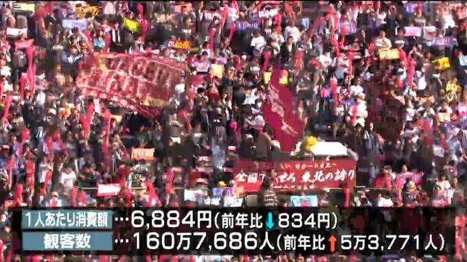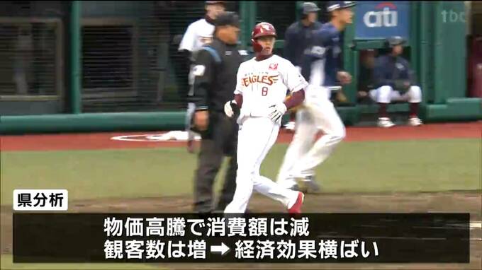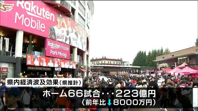 県の推計によりますと昨シーズン、楽天が仙台で開催したホームゲーム66試合の県内への経済波及効果は223億円で、前年より8000万円減少しました。