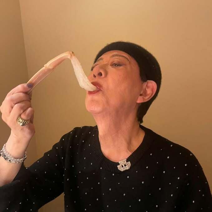 美川さんは「ど~も~ 美川よ~」「カニを食べたわよ~」と、いつもの調子でテキスト。投稿した写真では、素手でカニの脚をつかんだ美川さんが、見事なカニの脚肉・一本丸ごとにかぶりついています。