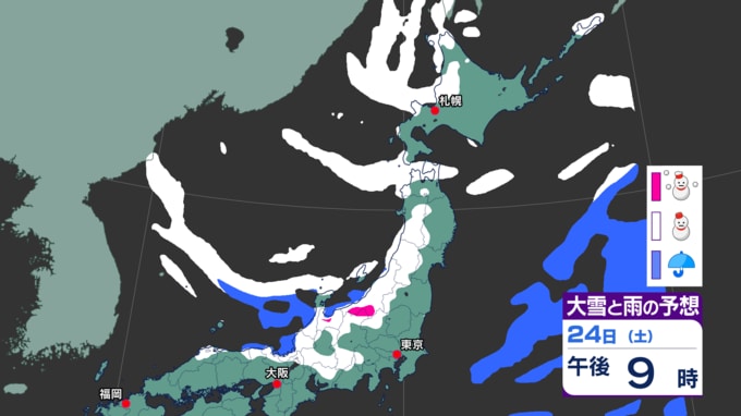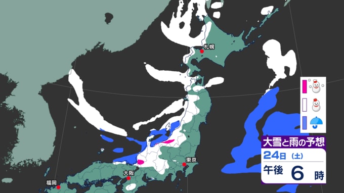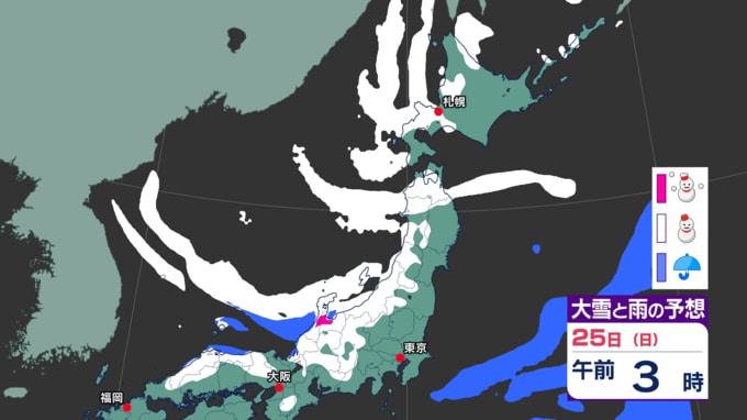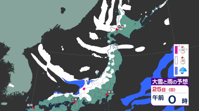 雪の予想(24日午前6時~25日午前6時までの24時間降雪量)