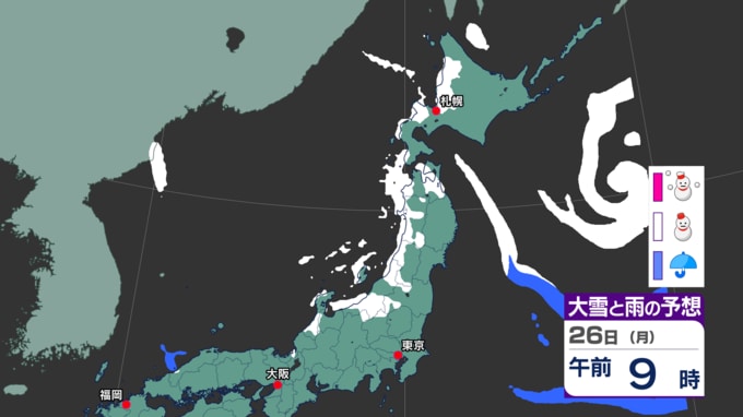 雪の予想(26日午前9時~26日午後9時までの大雪シミュレーション)