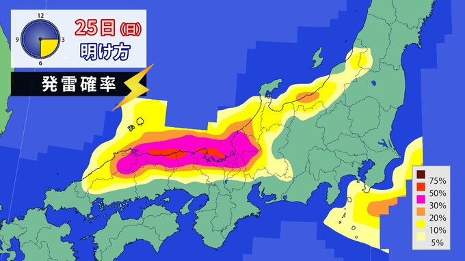 ▽北陸地方は、25日昼前にかけて、落雷や竜巻などの激しい突風、降ひょうに注意してください。