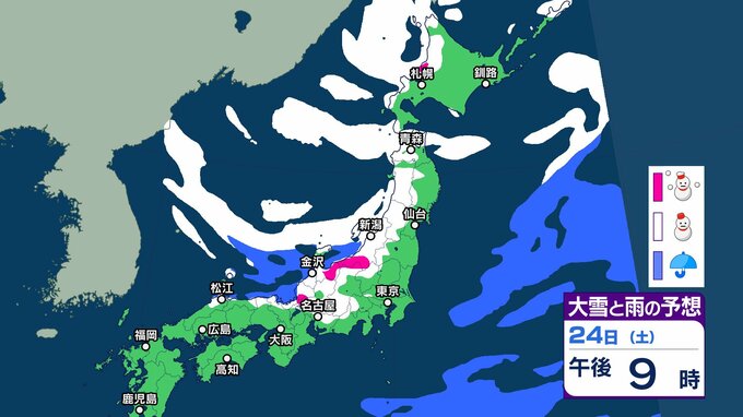 雪と雨のシミレーションでは、25日(日)にかけて、大雪が予想される地域があります。