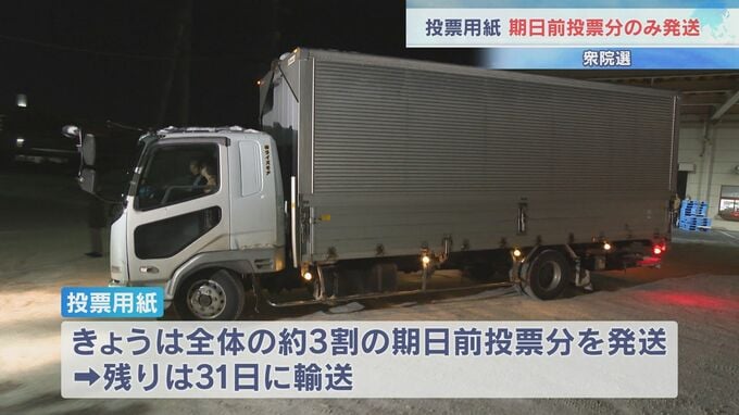 今回の衆議院選挙は準備の期間が短く、24日発送された投票用紙は全体のおよそ3割となる期日前投票の分だけで、残りは31日に輸送されます。