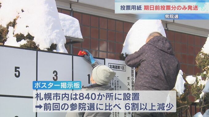 市の選挙管理委員会によりますと、札幌市内で掲示板が設置されるのは840か所で、前回の参議院選挙の2212か所に比べ、6割以上減っています。