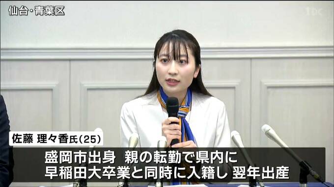 佐藤氏は、盛岡市出身の25歳。親の転勤により宮城県に移り住みました。2023年に早稲田大学を卒業と同時に夫と入籍し、翌年、第一子を出産しました。去年9月に国民民主党の公募に応募し、今月入党。党県連副幹事長を務めています。佐藤氏は子育ての経験から、少子化対策などを訴えています。