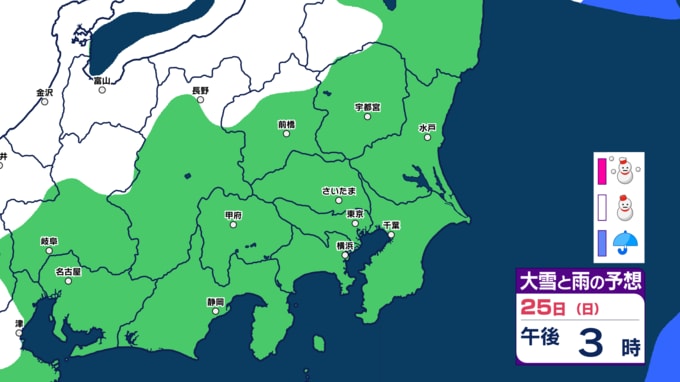 西日本から東日本の太平洋側の広い範囲で「雨または雪」と発表されており、現時点ではどちらになるかは分かりません。