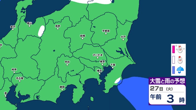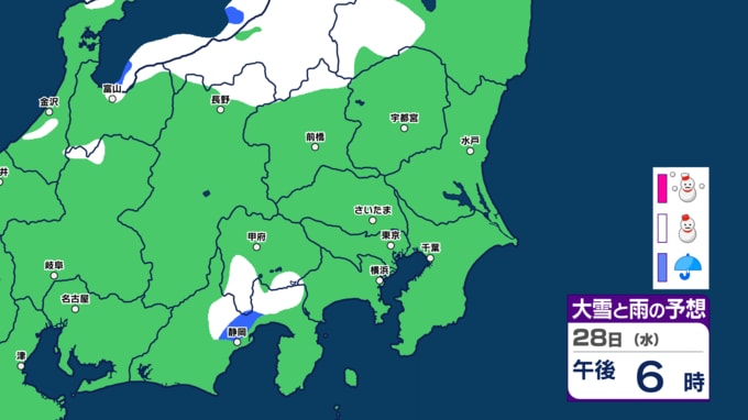 【再び冬型へ】東京、神奈川、千葉など29~30日ごろ雪予想 2月1日は南岸低気圧接近か【雪シミュレーション25日~30日(金)】 南日本放送 2026年1月25日(日) 11:59 国内 ▼(リンク1)28日~30日雪シミュレーション (リンク2)この記事を最初から読む 28日午後からの雪シミュレーション 東京、神奈川、千葉、山梨などで雪が予想されている「28日午後3時~30日までの雪シミュレーション」は画像で掲載しています。 ▼(リンク1)28日~30日雪シミュレーション (リンク2)この記事を最初から読む