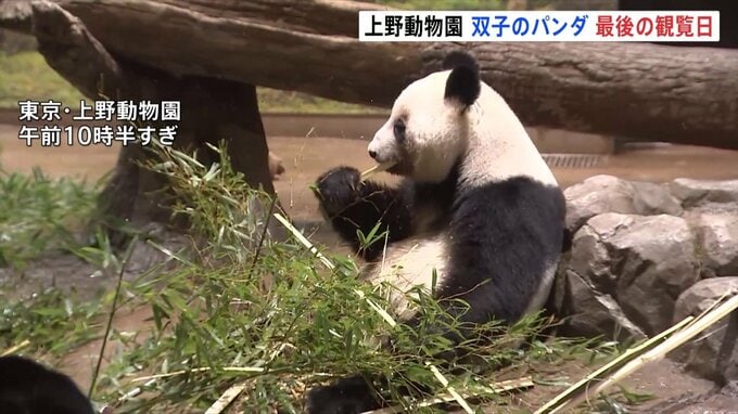東京・上野動物園の双子のパンダ、「シャオシャオ」と「レイレイ」。中国への返還が決まり、観覧できるのは、きょうが最後です。中国へ返還されることが決まった双子のパンダ「シャオシャオ」と「レイレイ」。動物…
