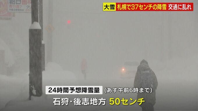 26日午前6時までの24時間に降る雪の量は、石狩と後志地方で50センチと予想されていて引き続き、交通障害などに警戒が必要です。