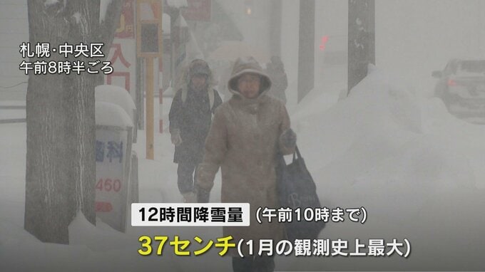 札幌市では25日午前10時までの12時間に37センチの雪が降り、1月の観測記録を更新しました。