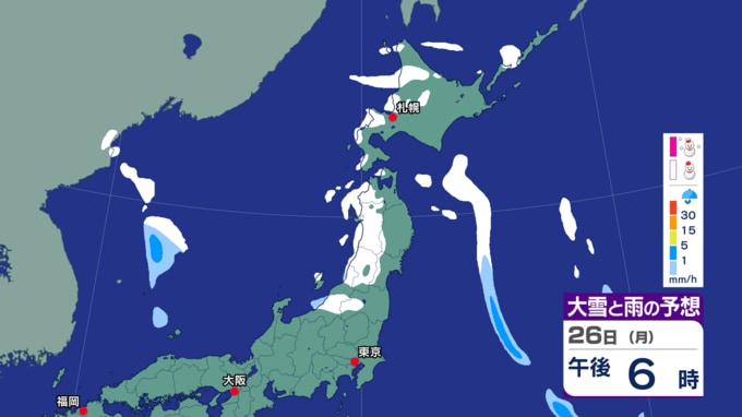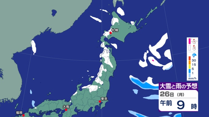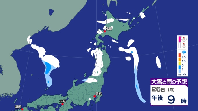 東日本と西日本では25日は、北日本では26日にかけて、大雪や路面の凍結による交通障害に警戒してください。