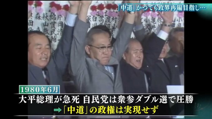 1980年5月、内閣不信任案が可決され、衆議院が解散。しかし、大平総理の急死で、自民党が圧勝すると「中道」による政権も実現しませんでした。