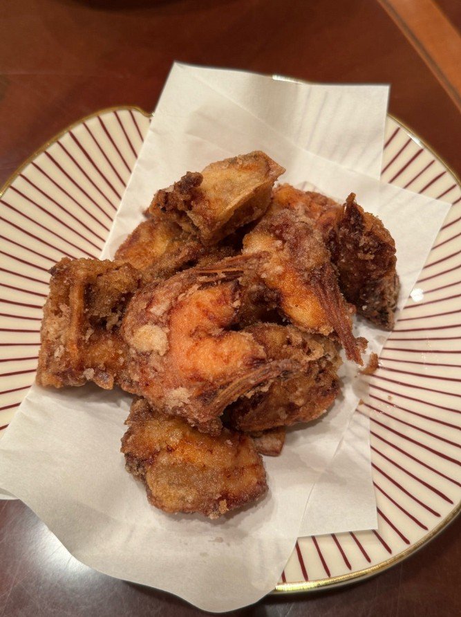投稿された写真には、海老、蟹、かまぼこ、椎茸などの豪華な具材が土鍋に並び、透き通った出汁が食欲をそそる様子が写し出されています。さらに「フグの唐揚げ」についても「久しぶりの今井 美味しかったぁ」と絶賛。こんがりと揚がった黄金色の衣が印象的です。
