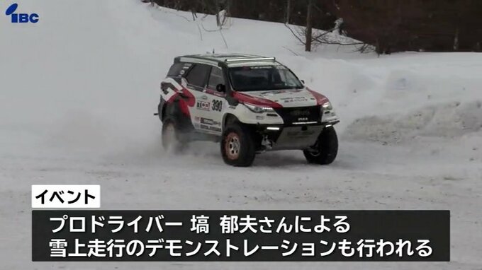 また、世界のレースで活躍するプロドライバー塙郁夫さんによるデモンストレーションも行われ、雪原をタイヤを滑らせながら走るドライビングテクニックに会場は沸いていました。