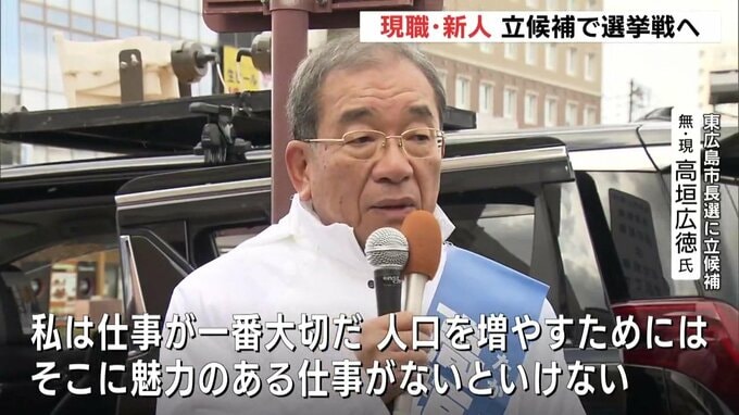 任期満了に伴う東広島市長選挙が25日告示され、現職と新人の2人が立候補しました。