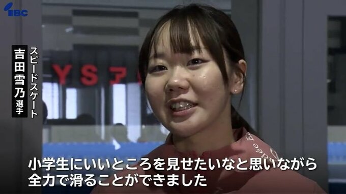 吉田選手は練習拠点にしている青森県八戸市のリンクで開かれた小学生の大会に、オープン参加という形でオリンピック前最後のレースに臨みました。